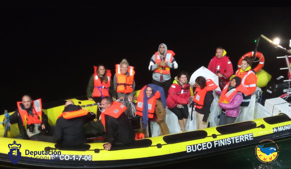 -Actividades marítimas: Se realizaron 15 salidas participativas desde los puertos de Muros y Fisterra; el número total de participantes fue de 103 personas. Además, se realizaron tres salidas para el estudio de fotoidentificación de arroaces desde A Coruña, con un grupo reducido de participantes debido a las necesidades de la actividad, con una participación de 5 personas. Lass imágenes de cetáceos fueron obtenidas con autorización del MITECO para la observación de cetáceos con fines científicos SGBTM/BDM/AUTSPP/20/2025. |