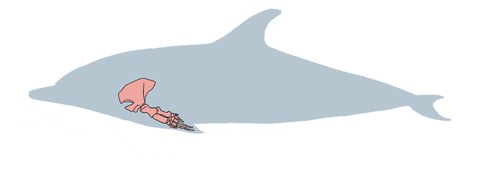A aleta está formada polas seguintes pezas: escápula, húmero, cúbito, radio, ósos da man e falanxes
