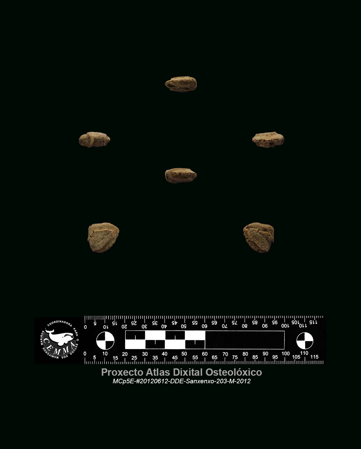 O material osteolóxico foi recollido contando coas autorizacións da Dirección Xeral de Patrimonio Natural da Xunta de Galicia e está despositado e custodiado no Banco de Mostras Biolóxico de CEMMA.